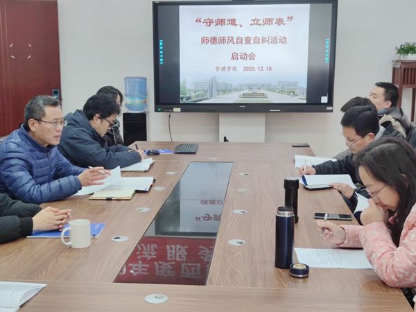 按照学校统一部署,管理学院于12月18日下午在明德楼A415会议室组织全体教工召开师德师风自查自纠工作动员大会,会议主题是“守师道、立师表”。
