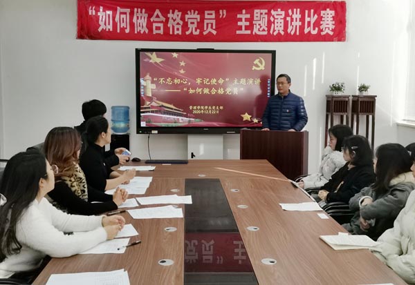 为深入学习贯彻党的十九届五中全会精神,深刻领会习近平新时代中国特色社会主义思想的丰富内涵,回顾入党历程,牢记初心使命,12月22日下午,管理学院学生党支部在明德楼A415组织开展了“如何做合格党员”的主题演讲比赛。管理学院党总支书记苗勇、学生党支部师生党员共计31人参加了本次活动。