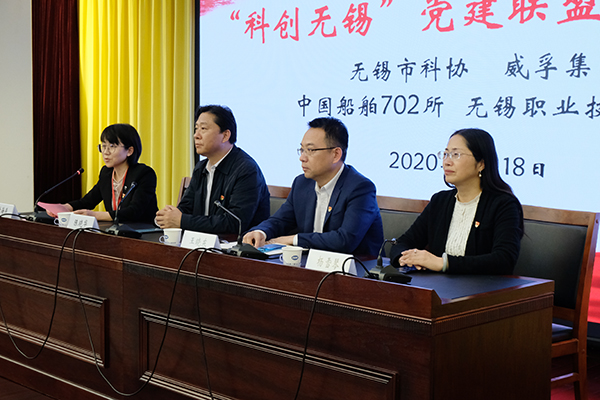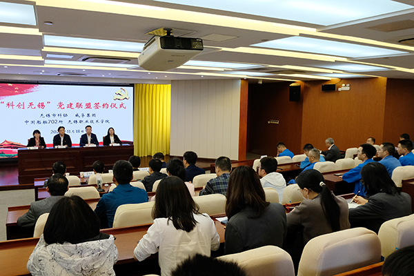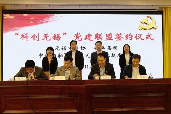 11月18日下午,“科创无锡”党建联盟签约仪式在中国船舶集团公司第七〇二研究所举行。“科创无锡”党建联盟由市科协牵头,市科协机关党总支、无锡威孚高科技集团股份有限公司党委、中国船舶集团公司第七〇二研究所党委、幻影网页版党委共同成立。市科协党组书记、主席陈晓华,无锡威孚高科技集团股份有限公司党委书记、董事长王晓东,中国船舶集团公司第七〇二研究所纪委书记甘海燕,我校杨雪琴副校长、党委组织部、科技处、继续教育学院等相关部门负责人、教师代表出席仪式。