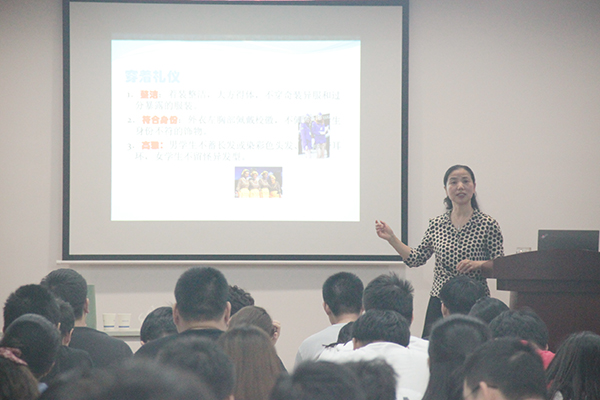 9月23日下午,学生事务中心青智库座无虚席,素质教育中心与关工委联合举办“梦想从礼仪教育起航”讲座,我校高级实验师金湘虹老师担任主讲人,一百二十多名学生到场聆听。