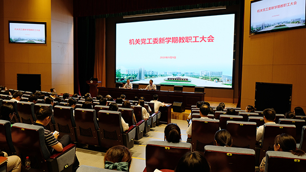 9月9日下午,机关党工委召开全体教职工新学期工作会议,部署新学期工作。会议由机关党工委书记、党委组织部部长奚小网主持。校长龚方红出席会议并讲话。