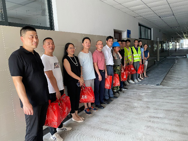 为了确保新学期教学工作有序开展,由汽车学院教代会代表提出的国教中心实训室走廊地毯更换项目,正在紧张有序地进行施工。8月20日下午,正值酷暑高温,副校长杨雪琴、强伟纲带领教代会提案工作小组部分成员、提案代表等来到国教中心慰问暑期一线施工人员和后勤处在岗职工,并送上消暑降温慰问品。
