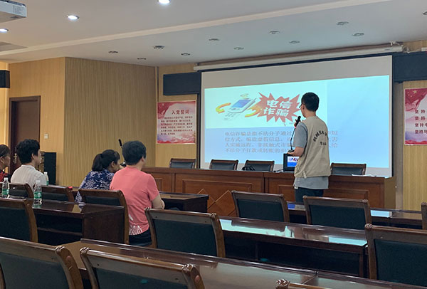 7月8日,志愿者奔赴张舍社区开展宣讲,围绕“电动车安全佩戴头盔”“电动车禁入电梯”“大货车死亡弯月”“家庭防火防霉”“防各类电信诈骗”等主题,针对张舍社区居民人口结构偏老龄化现状及实际需求,结合大量鲜活的安全事故案例,重点对城市交通安全规定和防电信诈骗做了详细宣传。通俗易懂的语言、图文并茂的讲解、情景再现的演示,受到了社区居民的欢迎。