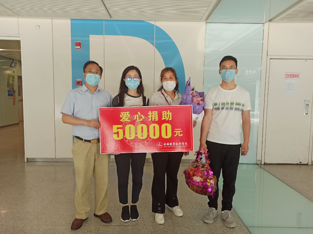 6月4日上午,我校学生处及汽车与交通学院相关教师、汽修51892班级的班长和团支书,赴南京鼓楼医院看望慰问被诊断为急性非淋巴细胞白血病的岳梦圆同学。