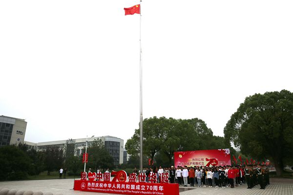 仪式最后,学校党委委员、副校长杨雪琴同志对现场的师生动情谈到,我们为做伟大的中国人而光荣,为经历这光荣的历史时刻而自豪。中国共产党带领中国人民在70年的不懈奋斗中,中国从一个受帝国主义欺凌的国家,变成了一个世界上的强大国家,无锡职院的发展壮大也是源于祖国的强盛伟大。希望全体师生能继续发扬“严谨治学,崇尚实践”的校训精神,不断成长为有理想,有担当,有品格,有作为的大国匠才,为实现中华民族伟大复兴和无锡职院的宏伟目标贡献力量。