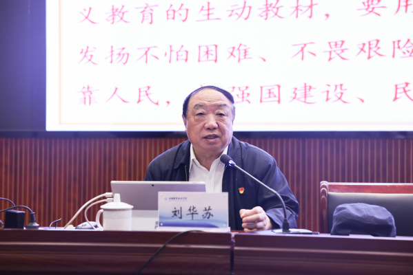 刘华苏向师生们介绍了新四军成立的历史背景和发展历程。他以史料、图片和生动事例讲解了南方三年游击战的艰苦卓绝、新四军在抗日战争中的重要作用和卓越功绩,并以《新四军军歌》为主线,解读、宣传了新四军坚定信念、坚忍不拔,英勇果敢、顾全大局、众志成城、纪律严明的新四军铁军精神。他向大家讲述了新四军英雄人物的光荣事迹,同时介绍了新时代发扬新四军光荣传统的英雄部队和英模人物。