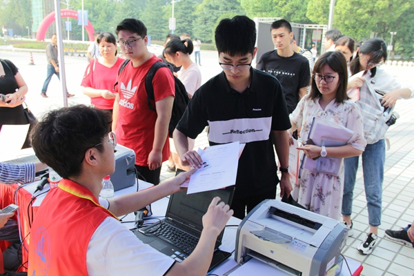 6日开始,相关部门和各学院党政负责人、辅导员、班主任、志愿者便已准备就绪,迎接陆续前来报到的新生。今年迎新,我校运用信息化手段,进一步简化报到流程。新生报到时,凭录取通知书上的二维码,在“录取信息验证”窗口扫一扫,班级、宿舍、班主任等信息便一目了然。新生再到各班级报到点办理手续,认识班主任,领取材料。班主任早早地建立了班级QQ群,新生通过扫描二维码,瞬间找到班级群大集体。