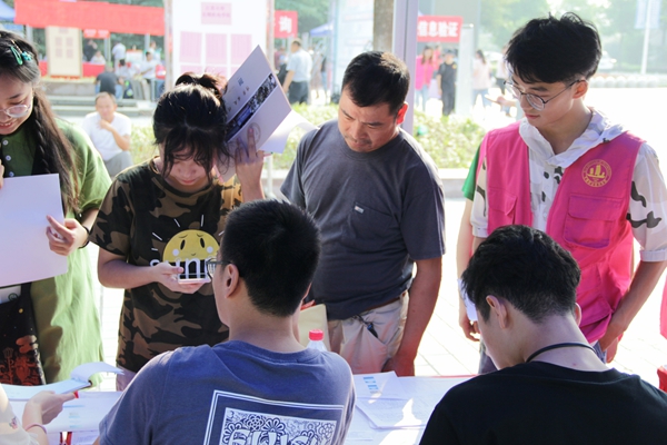 9月的校园,丹桂飘香、天空澄明。中央大道的新生接待点热闹非凡。我校今年共录取来自省内和吉林、山东、安徽、四川、广东、云南、新疆、西藏等23个省、自治区的4761名新生。