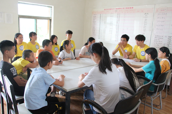 上课时,志愿者们用心教授他们知识,拓宽他们的视野,让孩子们尽情展示他们的活跃、天真以及才智。志愿者王挺宇向孩子们介绍了以后几天的课程内容以及规则。同时告诉孩子们,志愿者和他们都是朋友,他们在课堂上可以积极主动的举手发表自己的观点。