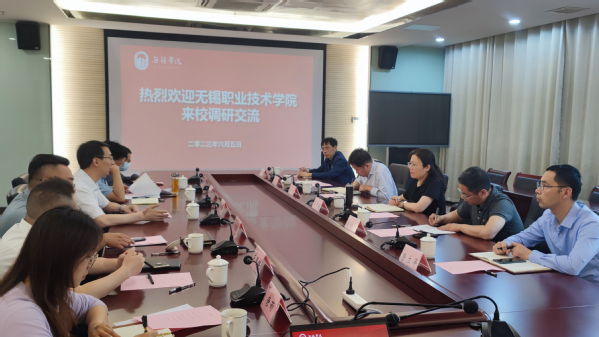 6月5日下午,副校长吴慧媛带领科产处、机械技术学院、控制技术学院、汽车与交通学院等部门相关负责人赴无锡学院学习调研科技服务、现代产业学院建设等方面的成功经验和做法。无锡学院副校长曹广喜,科技处、教务处、自动化学院等部门负责人参加座谈会。