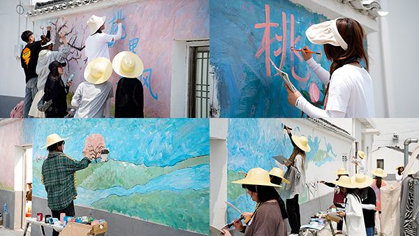 项目组主要面向分团委、学生会组织招募有相关技能的学生组建团队,根据学生特点和项目需求将学生分为设计组、拍摄组、外宣组、后勤组等,并按工作量再做小组分工。除部分成员因疫情原因参与线上设计部分,其他成员都参与到实际墙绘工作中,他们以墙为布,以阳山“桃文化”为主题,克服酷暑高温,圆满完成计划的墙绘任务,并得到了当地村委的高度评价。