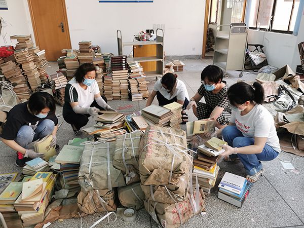 为加快我校中桥校区图书馆图书的专项加工整理工作,充分发挥党员先锋模范带头作用, 7月20日上午,图书馆直属党支部组织党员对馆藏老旧图书进行挑选。