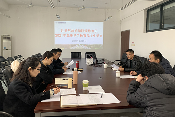 1月20日上午,外语与旅游学院在604会议室召开2021年度领导班子党史学习教育专题民主生活会。校纪委书记徐浪到会督导,纪委办相关负责人列席会议,外语与旅游学院领导班子成员参加会议。会议由学院党总支书记郭再泉主持。
