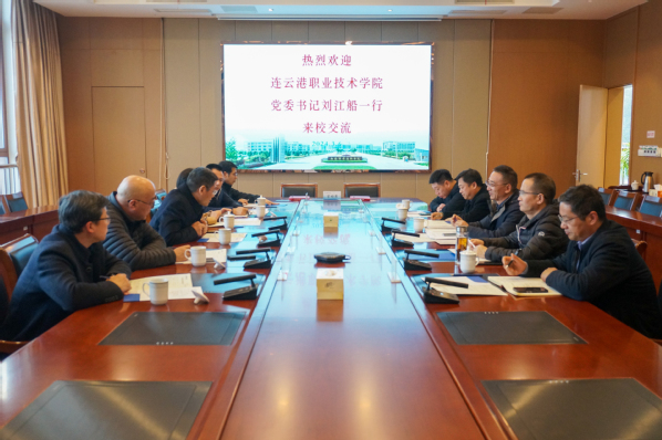 3月6日下午,连云港职业技术学院党委书记刘江船一行6人来校调研交流,我校党委书记龚方红,人力资源处、教务处、科产处、党校办等相关部门负责人参加调研座谈。