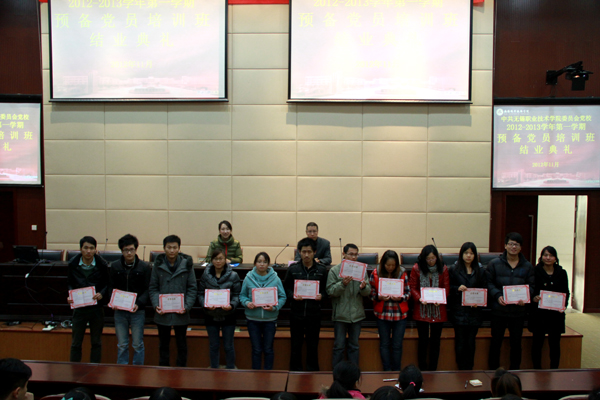 11月27日下午,我校2012-2013学年第一学期预备党员培训班结业典礼在国际交流中心一楼报告厅举行,中桥校区与太湖校区共139名学员参加了结业典礼。