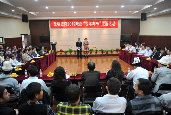 10月26日是新疆少数民族的盛大节日——古尔邦节,我校新疆少数民族新生和适岗培训班学员度过了愉快的节日。副校长华坚、招生办主任张建忠、学生处副处长吴斌,相关院系总支书记和辅导员、班主任、任课教师,新疆适岗培训班领队、辅导员等近百人参加了庆祝活动。