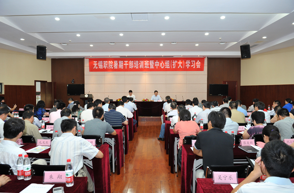 为强化领导干部素质,提升学校科学管理水平,我校于8月28日至30日在国际交流中心举办暑期干部培训班暨中心组(扩大)学习会,全校110多名副科级以上干部参加了学习培训。