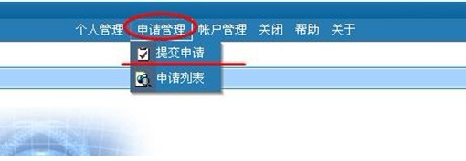 2.点击“申请管理”一栏中的“提交申请”