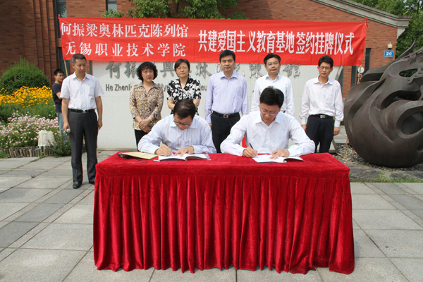 5月15日下午,我校和何振梁与奥林匹克陈列馆共建爱国主义教育基地签约揭牌仪式举行。无锡市体育局局长陆惠玲、调研员徐暐,市教育局副局长符菊成,市委宣传部江金健处长;我校党委书记朱爱胜、老领导傅筠、相关部门负责人和30名学生参加了签约揭牌仪式。