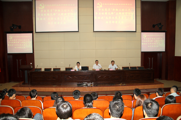 王国忠部长向到场的学生党员通报了《关于在学生党员中开展“弘扬三创三先 争当校园先锋”主题教育活动的通知》,指出此次主题教育活动的目的是要引导学生党员争当“思想政治好、学习成绩好、作用发挥好、群众反映好”的“四好校园先锋”,在德智体美相互促进、有机融合中实现全面发展,成为高素质、高技能先锋人才。大学生党员素质工程是省委组织部结合我省实际,为深化创先争优、提高大学生党员队伍建设科学化水平而决定实施的,旨在通过形式多样的活动,努力实现大学生党员思想政治、道德品行、科学文化、工作能力和身体心理素质“五个显著提升”。