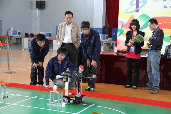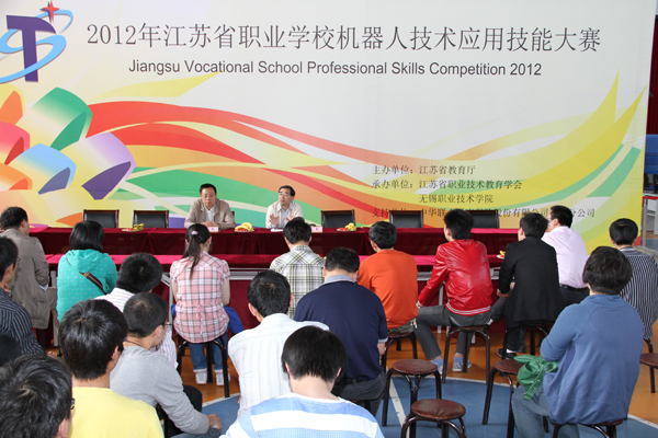 由省教育厅主办的2012年江苏省职业学校技能大赛机器人技术应用项目竞赛,4月28日在我校体育馆举行。来自南京、徐州、苏州、无锡、常州、镇江6个大市代表队的18名选手,参加了机器人装配和机器人运行两个环节的竞技。