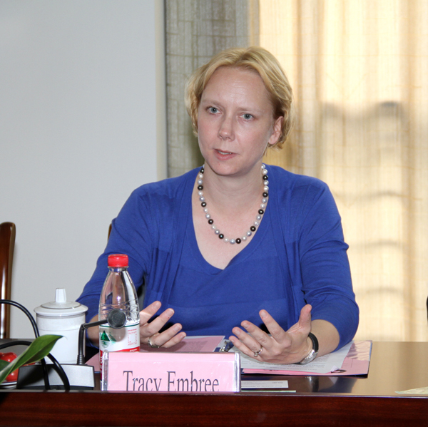 戴勇校长向Tracy Embree女士一行表示欢迎,并重点介绍了我校办学特色、产学合作模式、国际合作办学、国际化发展战略等方面的情况,以及我校示范院校建设及成效、国家级物联网应用示范校建设等内容。