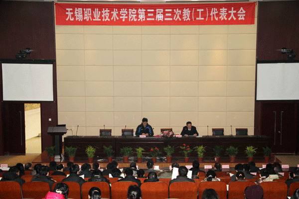 上午9时,与会代表审议通过三届三次教(工)代会议程后,大会在雄壮的国歌声中开幕。接着,戴勇院长从质量工程、基础建设、加强管理等五个方面做了学院2011年度工作报告,在充分肯定成绩的同时,指出了存在的不足。在部署2012年工作时,戴勇院长指出,我们要以“科学发展、创新发展、和谐发展”为主题,以提高教育质量、服务经济转型、践行创先争优为主线,以立德树人为根本,以建设“国家级物联网示范学校”为抓手,努力实现“四个重点突破”,全力推进“质量立校、人才强校、开放兴校、文化厚校”战略,创造优异成绩迎接党的十八大胜利召开。并提出了九大工作目标,即完成机构、院系调整,配好各级各类干部,提高执行力;实施人才强校战略,深化人事分配制度改革,提高教职工在学校改革、发展和管理工作等方面的积极性和创造性,力争完成“双高”人才引进、培养“双二十”计划,增强学院的科研水平和“四技”服务能力;完成国家级物联网示范校项目年度任务,实现阶段目标;全力支持无锡市促进高等职业教育发展综合改革试验区建设,深化教育教学改革,探索高职本科、中高职衔接等人才培养工作,完成普通高校公共艺术等专项考核、评估工作;以学生养成教育为重点,继续深化“一站式”服务,提高素质教育成效;完善招生就业工作体系,落实“领导负责、部门统筹、院系推进、绩效考核”的招生就业工作机制,积极探索留学生招生;依据绩效管理要求,完善财务资产管理及国有资产管理方案并组织实施;有序推进校园基本建设,启动留学生综合楼建设项目,完成智能工厂厂房建设等项目;维护学院安全稳定,推进和谐校园建设,完善反腐倡廉制度建设,创建平安校园。同时安排了八个方面的主要工作任务。
