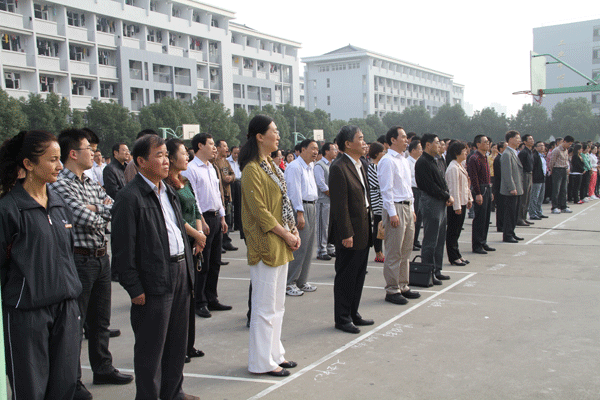 参加升旗仪式的师生员工