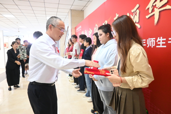 图书馆馆长韩冰为活动致辞,肯定了同学们的作品并向大家介绍了图书馆的美育资源。活动现场还表彰了本次参展获奖作品,强伟纲为获奖学生代表颁奖。财经学院商务英语22351班朱奥冉同学作为代表发言,讲述了自己学习绘画,从零基础的“小白”成长为“达人”的心路历程。