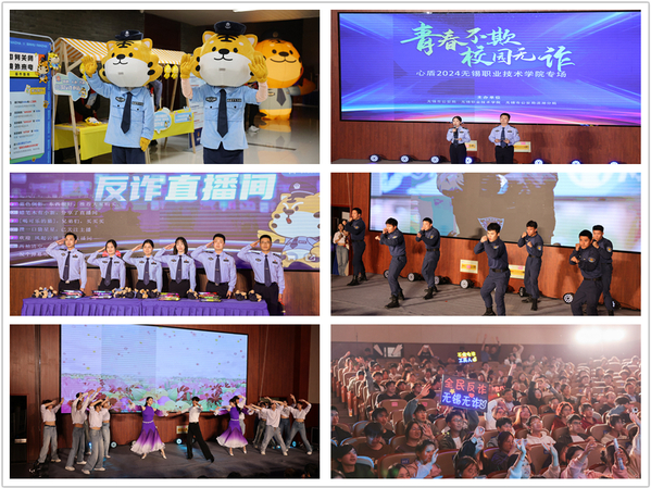 为深入推进“心盾2024”宣防行动,全力压降涉校涉生电诈警情,11月15日晚,我校与无锡市公安局、无锡市滨湖公安分局联合举办“青春不欺 校园无诈”心盾2024专场晚会。校党委副书记杨雪琴、副校长储开峰、滨湖公安分局副局长李杰超、滨湖公安分局政治处主任浦景林及400余名师生现场参加活动,晚会还通过滨湖公安、江苏政法委等官方平台的官微官网进行全程直播,吸引了上千名师生在线观看并互动。