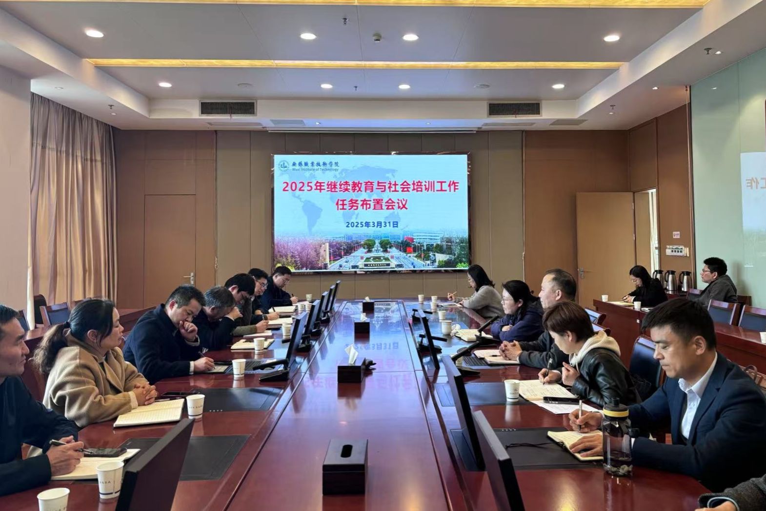 为更好落实学校党委行政2025年继续教育工作有关要求,做好学校社会培训工作,3月31日下午,学校在厚德楼F201会议室召开2025年度培训工作会议。分管校领导吴慧媛、各教学部门主管、协管培训领导及继培部全体人员参加会议。