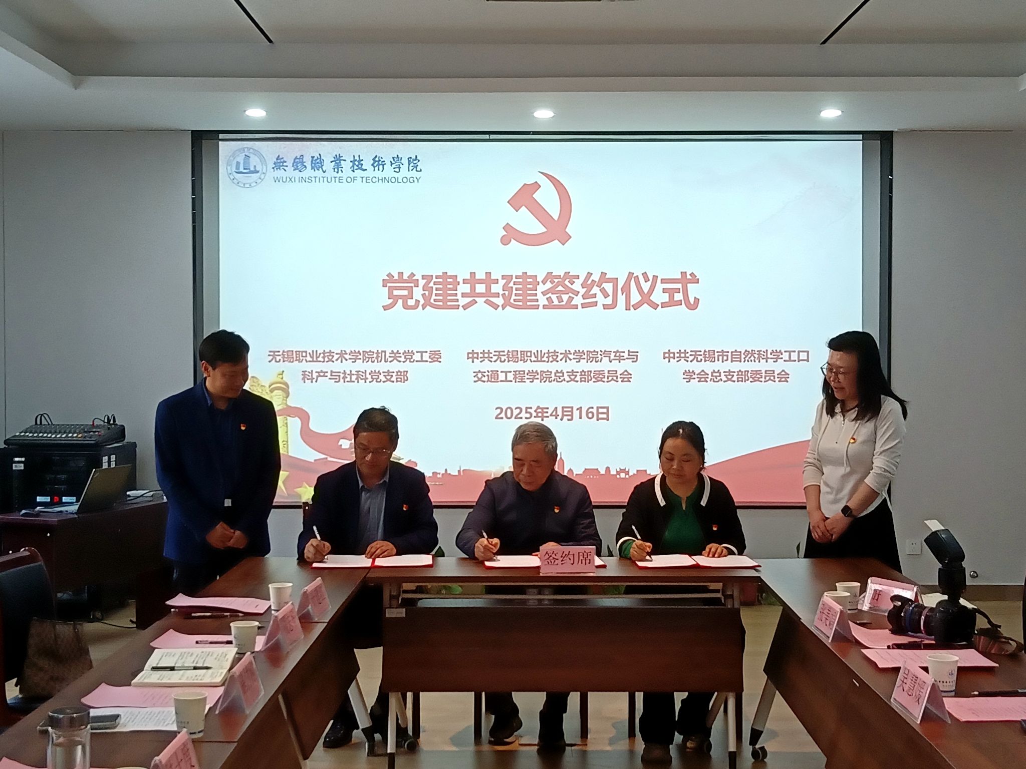 为深入学习贯彻党的二十届三中全会精神,推动学校党建高质量发展,探索校会党建合作新模式,4月16日下午,无锡市自然科学工口学会党总支与我校机关党工委科产与社科党支部、汽车与交通工程学院党总支三方党建共建签约活动在工业中心B-S204会议室举行。无锡市自然科学学会党委副书记谌付刚、我校副校长吴慧媛与三方党组织负责人及党员代表等十余人共同出席了本次活动。