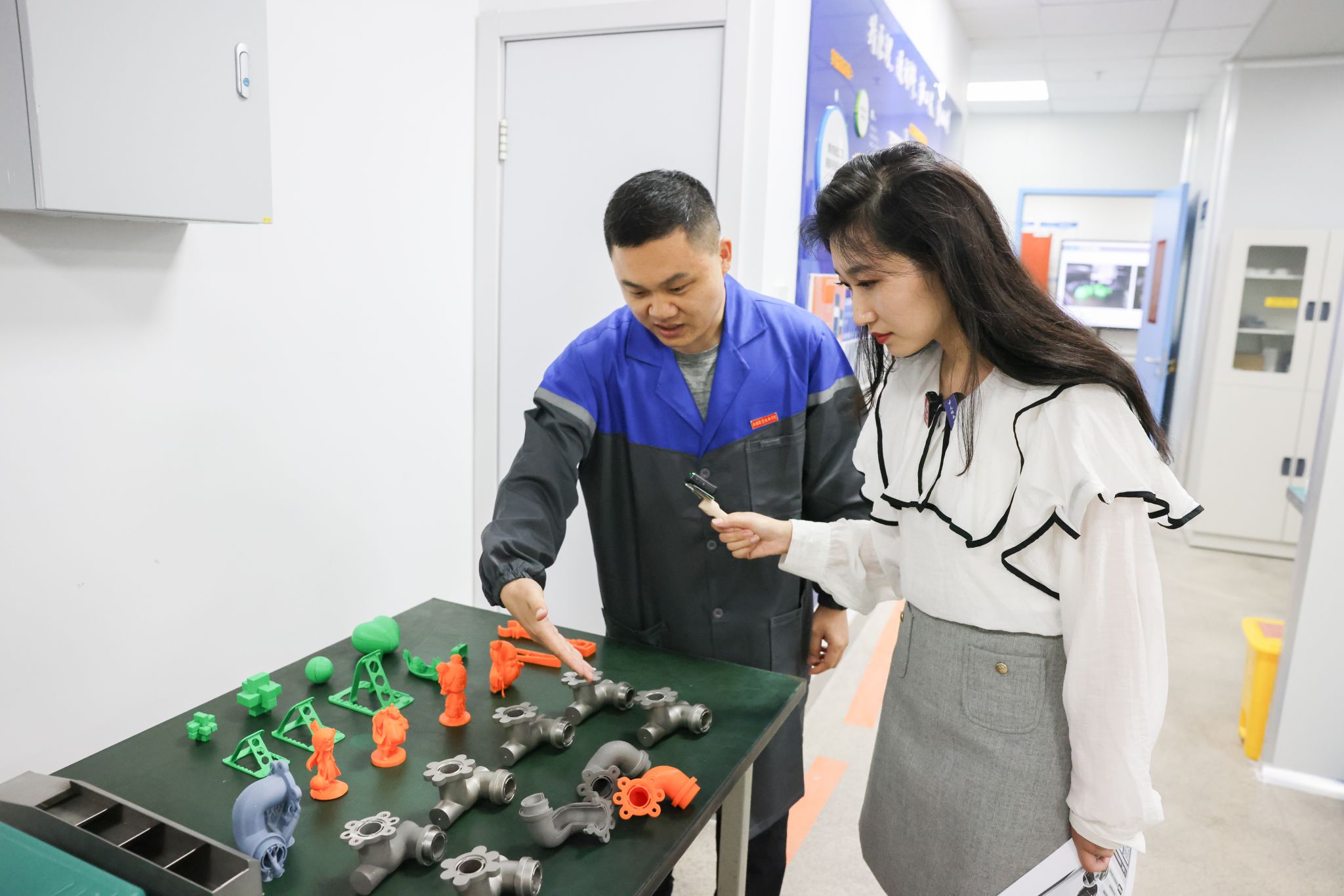 直播由机械工程学院专业教师万安然开场,向网友们分享了自己在锡职求学与回到母校任教的经历,讲述了学校办学条件和硬件环境的变化。随后,职教体验官、无锡教育电视台主持人葛嘉岑带领网友们先后走进增材制造工艺装备与先进应用实验室、难加工材料切削技术与装备研究实验室、公共虚拟仿真实训中心和基础课部物理实验室,了解3D打印、难加工材料在工业生产、航空航天以及日常生活中的应用,以及数字孪生、裸眼3D技术在专业教学中如何发挥作用。