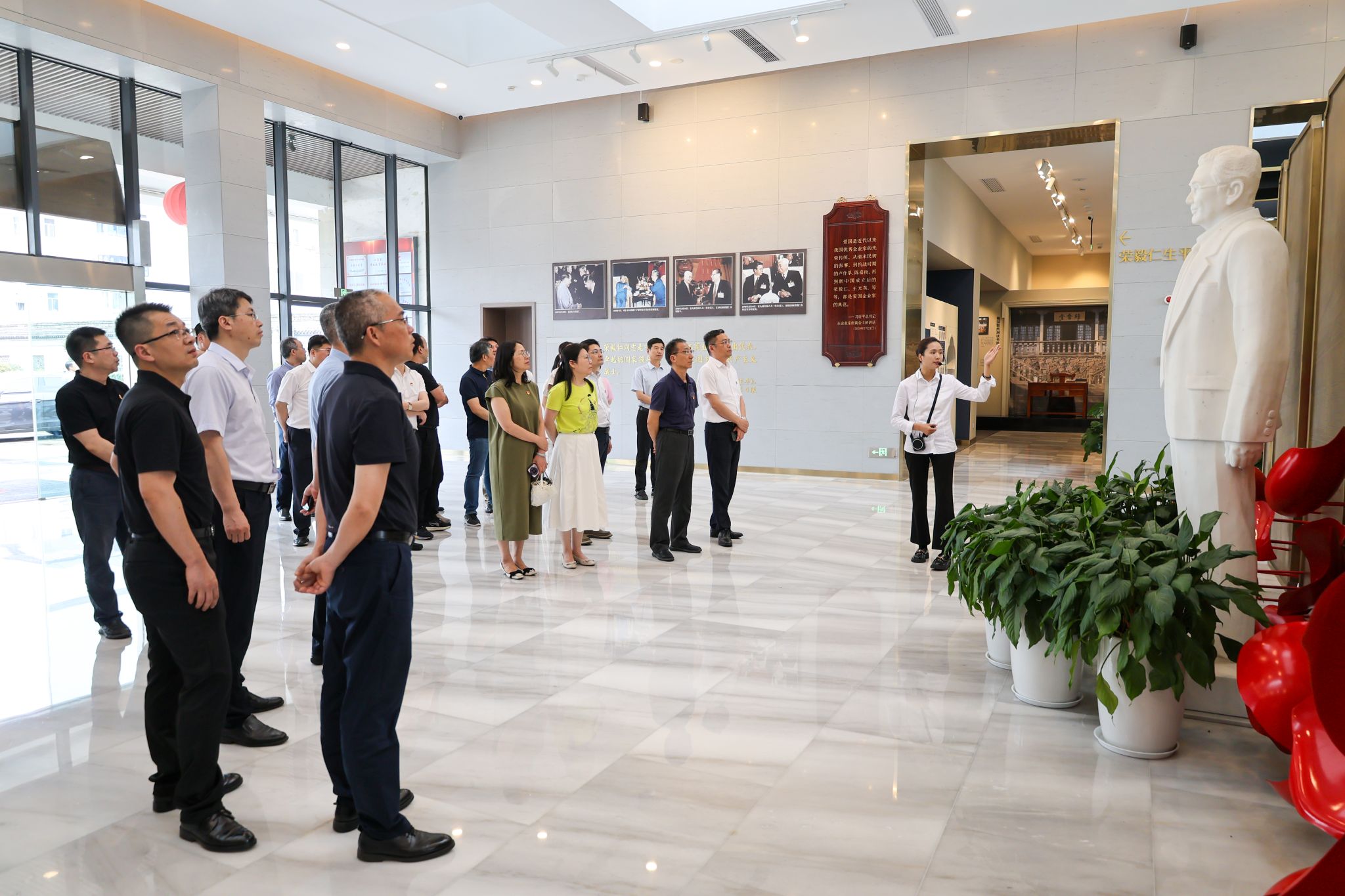 荣毅仁纪念馆坐落于荣氏故居旧址,陈列着丰富的历史资料与珍贵文物。在活动过程中,干部们跟随讲解员的脚步,依次参观了荣毅仁事迹陈列展示厅、荣氏故居等场馆,一幅幅照片、一段段文字,生动呈现了荣毅仁从民族工商业巨擘到共和国副主席的不凡经历,全方位展现了其实业报国、廉洁奉公的一生,以及荣氏家族艰苦创业、爱国奉献的历程和优良家风。