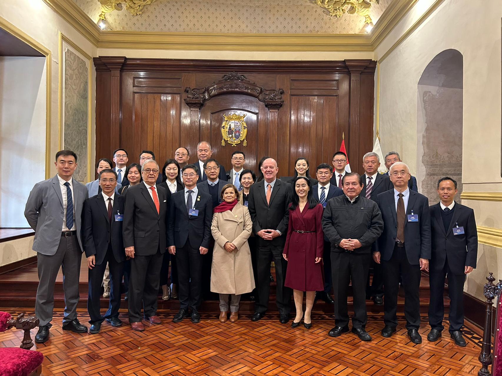 在秘鲁期间,代表团参加了秘鲁圣马科斯大学举办的双边教育对接会。会上,龚方红向秘鲁政府相关部门官员、高校负责人及中资企业代表详细介绍了我校的国际化办学实力与优势合作项目,引起了与会者的浓厚兴趣。代表团还访问了秘鲁教育部及里卡多帕尔玛大学孔子学院,深入了解秘鲁职业教育办学特色和孔子学院发展现状。双方围绕学生短期交流、大学生海外实践教学基地建设、汉语教师外派、“中文+职业技能”人才培养等合作领域进行了深入探讨。