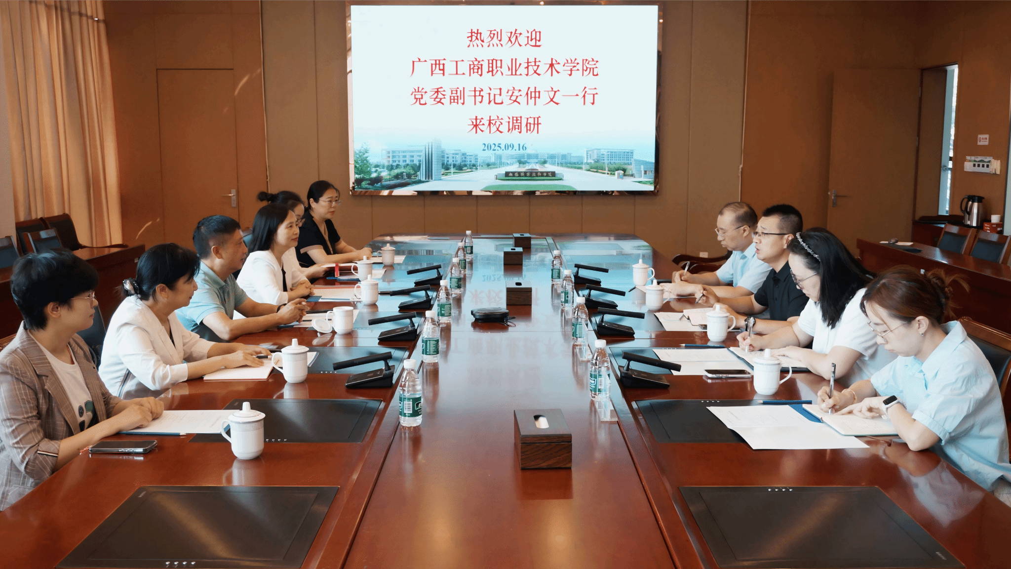 9月16日上午,广西工商职业技术学院党委副书记安仲文、纪委书记韦云凤一行来校调研,座谈交流会在厚德楼F201会议室召开。我校纪委书记李衔、财经学院院长赵爽热情接待来访专家。