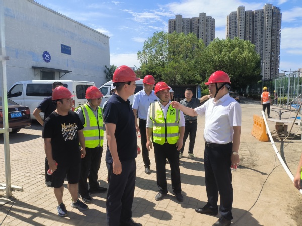 储开峰一行先后来到杜鹃园、牡丹园等学生宿舍楼,询问留校学生情况并要求工作人员确保留校学生安全稳定,带去学校的关心问候。随后走访了芳园和强国大楼施工现场,储开峰向施工单位负责同志详细询问了工程的进展情况,对现场施工安全文明措施、工程质量、标准化管理给予充分肯定,他指出,校园基建工程是百年大计,质量是生命,安全是保证,施工过程一定要抓好安全生产,增强安全防护意识,普及防暑降温知识,根据高温季节特点,合理安排作息时间,落实防暑降温措施,确保一线工人身体健康,确保工程优质、安全、高效推进。