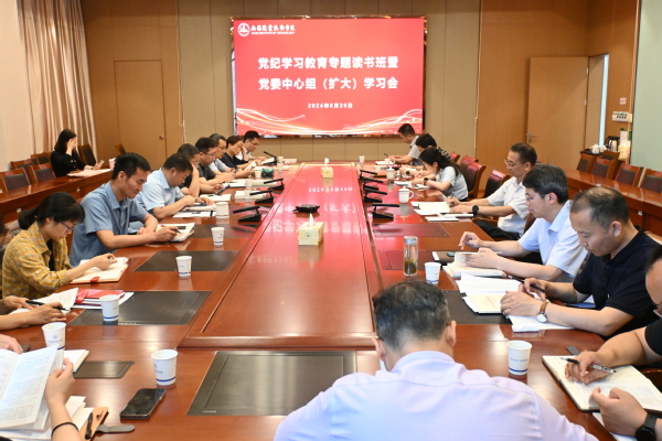 6月26日下午,学校召开党员干部党纪学习教育专题读书班暨党委理论学习中心组(扩大)学习会,围绕习近平总书记关于全面加强党的纪律建设的重要论述,以“弘扬党的光荣传统 加强党的纪律建设”为主题开展集中学习和交流研讨。全体读书班成员和党委中心组成员参加学习。