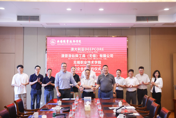 6月11日上午,澳大利亚DEEPCORE公司CEO Mr.Mark Dogan、常务董事Mr.Scott Tumbridge和澳普洛钻探工具(无锡)有限公司总经理方坤、技术总监顾光辉一行8人来校参观访问,并就加强型轻型钻杆、金刚石钻头、钻机关键零部件等相关课题开展技术合作,签署三方战略合作协议。我校党委书记龚方红、科技产业处处长钱晓忠、机械工程学院院长王骏、智能仪器有限公司总经理俞张勇等人出席签字仪式。