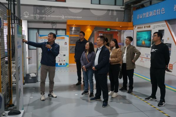 会上,双方围绕教学成果奖申报、产科教融汇、智能制造专业群建设等内容进行了深入交流。会前,曾文权一行参观了智能制造工程中心和机械制造工程中心,进一步了解我校教学科研设施建设。
