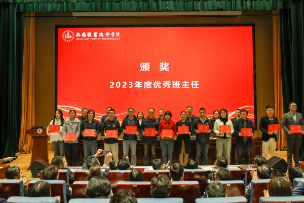 副校长吴慧媛宣读《关于表彰2022-2023年新闻宣传先进集体和个人的决定》,学生处、图书馆、机械工程学院、物联网工程学院、开源创新创业学院获评“新闻宣传工作先进集体”,孙杰等15名同志获评“新闻宣传工作先进个人”。副校长储开峰宣读《关于表彰2023年度优秀班主任的决定》,金政翰等31名同志获评“优秀班主任”。