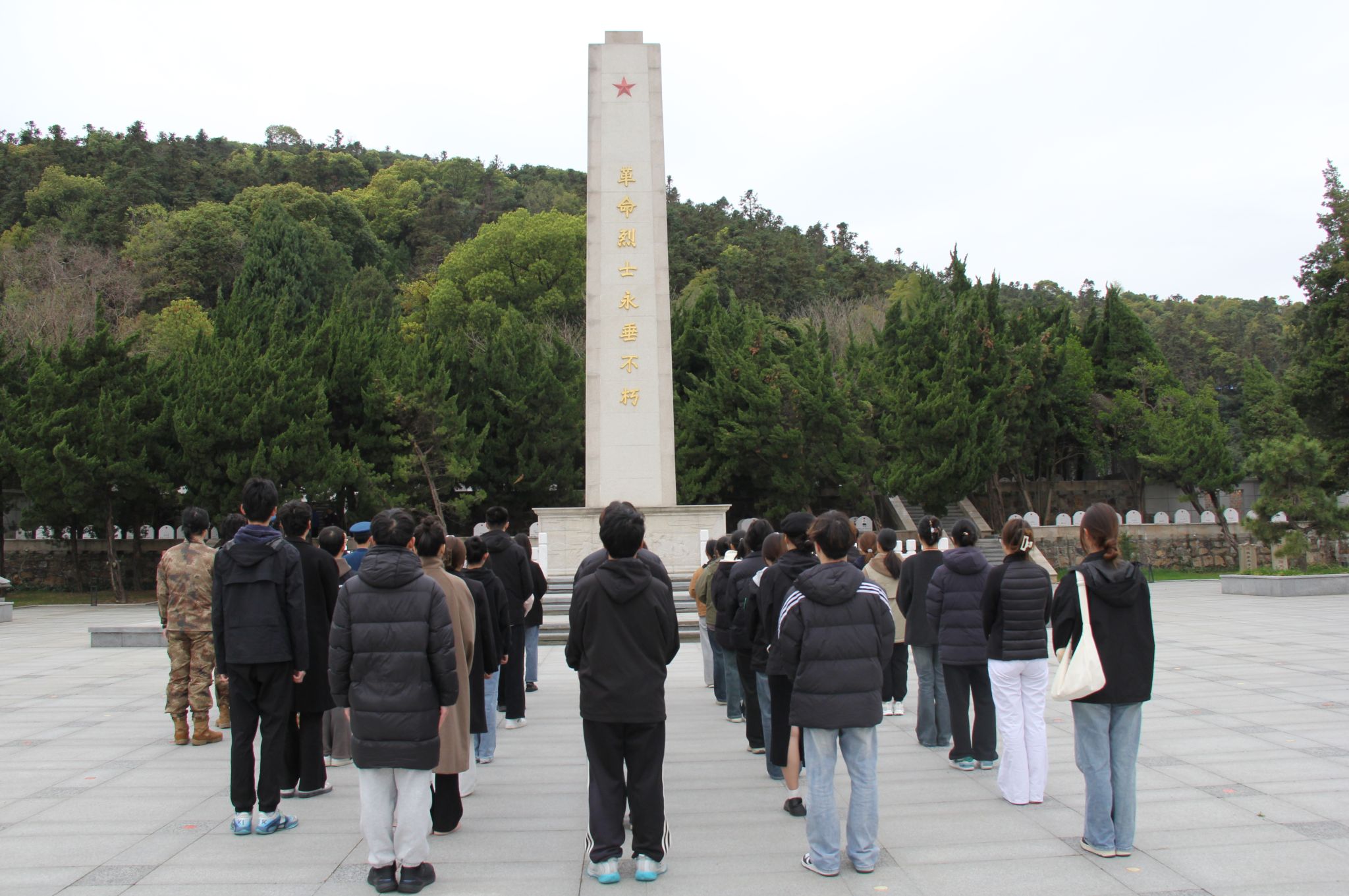 学生肃立注目纪念碑
