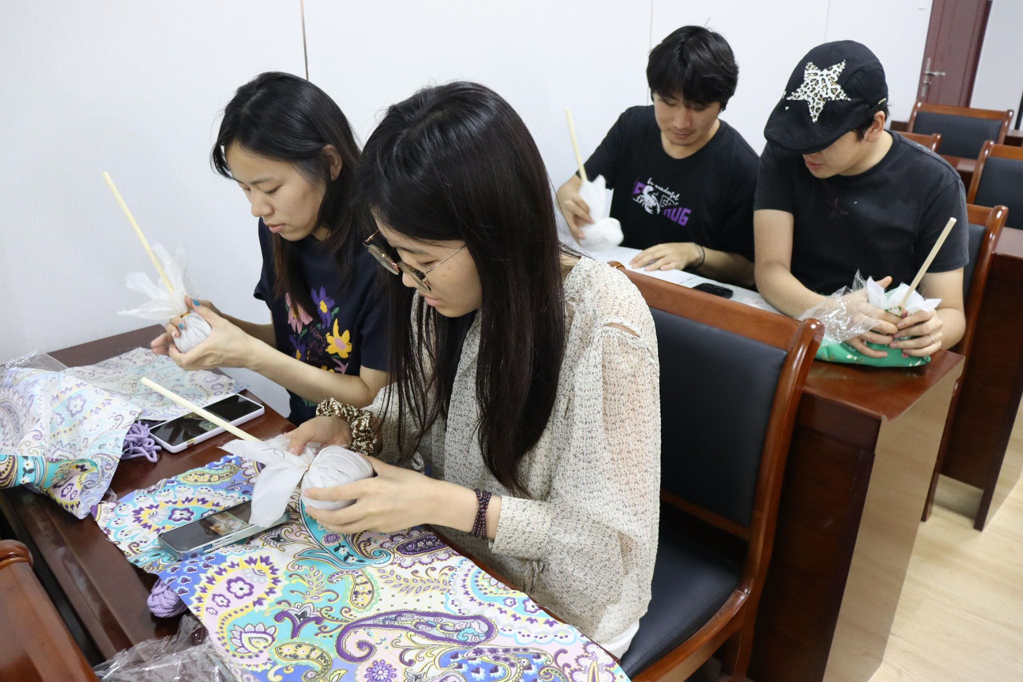 在老师的细致讲解和观看视频的学习中,大家开始了艾草锤的制作。活动现场气氛热烈,大家纷纷动手实践,将所学的理论知识运用到实际操作中。有的同学在组装锤子时小心翼翼,生怕出现一丝差错;有的同学在装饰环节充分发挥创意,为自己的艾草锤增添了许多个性化元素。尽管过程中遇到了一些小困难,但在大家的互相帮助下,一个个精美的艾草锤逐渐成型。看着自己亲手制作的作品,大家脸上洋溢着幸福与喜悦。