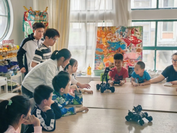 为大力弘扬科学精神,普及科学知识,促进科技创新和科学普及的协调发展,把科普知识、科学新技术融入到“一站式”学生社区活动,4月27日下午,控制工程学院机器人协会在周新苑二期党群服务中心203室开展了一场“科技启蒙,童心启航”的科普活动,活动旨在通过生动有趣的互动体验,激发孩子们对科学技术的兴趣,培养他们的创新思维与实践能力。