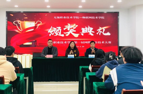 3月26日下午,学校第一届网络安全技术大赛暨“复兴杯”2023年第四届大学生网络安全精英赛颁奖典礼在物联网工程学院图C-401隆重举行。学院副院长段莉华、无锡大云教育科技有限公司总经理李欢乐、计算机系主任肖颖以及获奖选手、各班代表共计60余人共同见这一荣誉时刻。