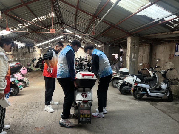 清名桥社区党委书记邵强一行热情接待了志愿者,带领志愿者们参观了社区党群服务中心,介绍了社区楼栋分布和居民总体情况。随后,志愿者们在社区工作人员的指引下排查小区电动车篷充电安全隐患、整理违停车辆,入户向社区居民发放了电动车安全使用手册和宣传单页,并向居民宣讲注意点和细节。宣讲过程中,志愿者们在常华老师的指导下,耐心细致地解答了居民们关于电动车紧急情况处理等方面的疑问,并提供了实用的建议和指导,共同营造安全、文明、便利的小区出行环境。