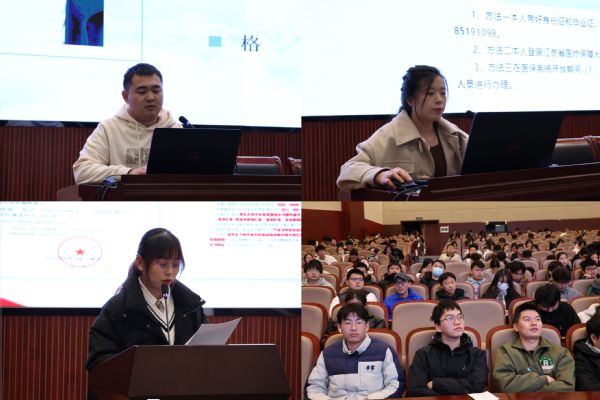 三位同学以优异的学习成绩、丰富的社会实践活动、志愿者服务活动以及良好的组织管理能力等方面,向同学们树立了榜样的标杆,勉励同学们要青春有梦,脚踏实地;胸怀中国梦,坚定理想信念,务实进取。三位学生代表还向全体学生解读科普《江苏省高校本专科学生资助政策》、《幻影网页版本专科学生奖助政策》和《学生医保指南》三个文件,让同学们详细地了解到江苏省和学校的相关资助政策以及就医时使用医保的相关知识。