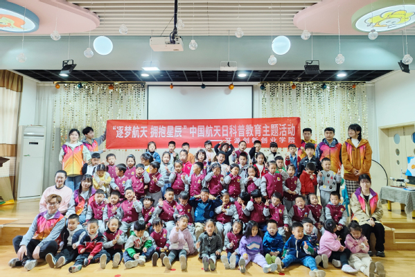 逐梦航天,拥抱星辰。今年4月24日是第八个“中国航天日”,为进一步深入学习贯彻习近平新时代中国特色社会主义思想,做好大学生党员的培养教育,担当更多社会责任,4月24日上午,开源创新创业学院学生党支部一行9名师生志愿者赴保利实验幼儿园,与小朋友们开展了一场生动又具趣味性的科普教育主题活动。
