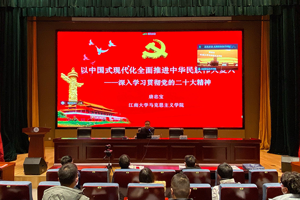 根据教育部和省委教育工委关于组织开展全省高校学习宣传党的二十大精神相关部署要求,结合学校开展学习宣传党的二十大精神师生巡讲活动工作安排,12月5日下午,控制技术学院党总支邀请江南大学马克思主义学院教授、博士生导师唐忠宝作题为《以中国式现代化全面推进中华民族伟大复兴——深入学习贯彻党的二十大精神》的主题宣讲,学院党总支班子、全体师生党员、学生代表等200余名师生通过线上、线下方式共同聆听宣讲。学院总支书记曹小兵主持报告会。
