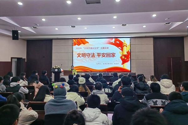 细节关乎生命,安全文明出行。为全面提高交通安全意识,有效预防和减少道路交通事故发生,切实筑牢道路交通安全防线。在第十一个122“全国交通安全日”即将到来之际,保卫处于11月30日在国教二楼报告厅组织举办了交通安全专题教育活动,特邀无锡市滨湖交警大队朱晓新警官来校作讲座,我校全体新生安全信息员和驻校保安项目部成员参加了活动。